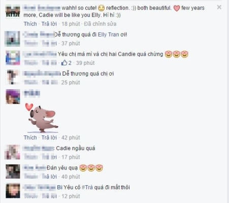 Những bức ảnh này nhận được rất nhiều sự quan tâm từ các fan hâm mộ, hầu hết mọi người đều tỏ ra thích thú và trầm trồ trước sự đáng yêu của 2 mẹ con nhà Elly Trần.