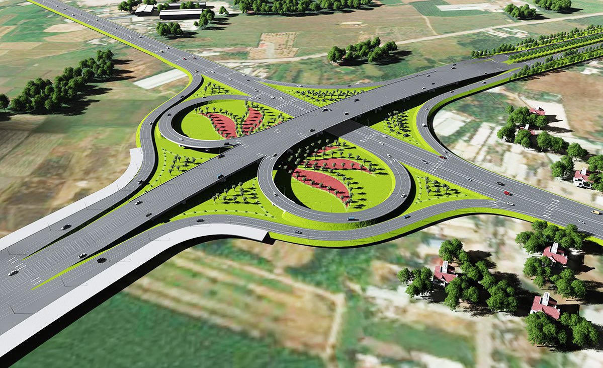 Phối cảnh Nút giao đường T1 sân bay Long Thành kết nối đường 25C qua quốc lộ 51.