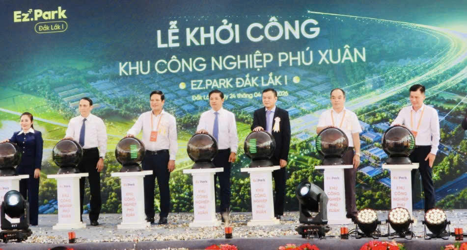 Đắk Lắk khởi công KCN Phú Xuân – Ez.Park hơn 313 ha, vốn gần 2.500 tỷ đồng, kỳ vọng hút FDI, phát triển công nghiệp xanh, tạo hàng nghìn việc làm và thúc đẩy kinh tế Tây Nguyên.