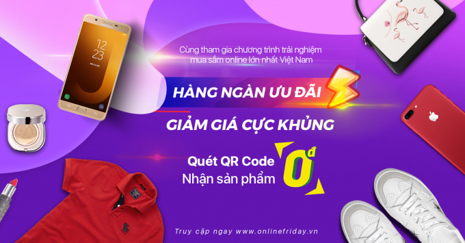 Đặc biệt, trong sự kiện mua sắm vào ngày 7/9 tới đây, Online Friday còn triển khai thêm sự kiện mua sắm các sản phẩm có giá 0 đồng dưới hình thức quét mã code QR như vé máy bay nội địa và quốc tế của JETSTAR, cơ hội du lịch tại Vinpearl Cửa Hội của Best Price Travel, bộ nồi inox, ấm siêu tốc inox hay bếp nướng đến từ SUNHOUSE, các sản phẩm mỹ phẩm như xịt khoáng dưỡng ẩm, nước rửa tay dưỡng ẩm đến từ Scentuals, v.v...
