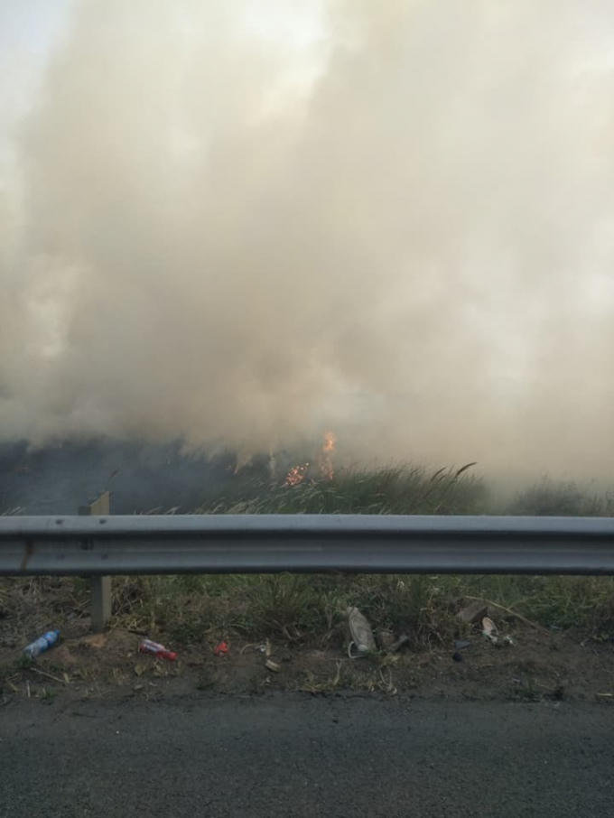 Khoảng 15h chiều ngày 3/4, người dân đốt cỏ ven đường cao tốc TP HCM – Long Thành – Dầu Giây đoạn gần nút giao quốc lộ 51, tỉnh Đồng Nai làm cho khói đen mù mịt bay lên cao tốc.