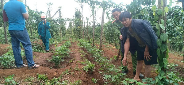 Trước đó, ngày 24/12/2020, lực lượng Công an huyện Đắk G'Long tiến hành kiểm tra và bắt quả tang Trần Thế Đại, Phạm Văn Sơn, đang thực hiện hành vi trồng cây cần sa trái phép tại khu vực đất rẫy xã Quảng Sơn, huyện Đắk G'long.