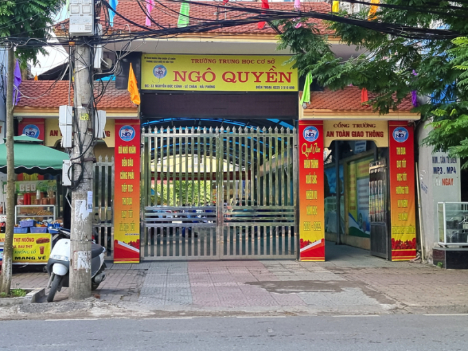 Trường THCS Ngô Quyền nơi công tác của bà Nguyễn Thị Thu Hương, hiệu trưởng và bà Nguyễn Thị Huế, thủ quỹ nhà trường.