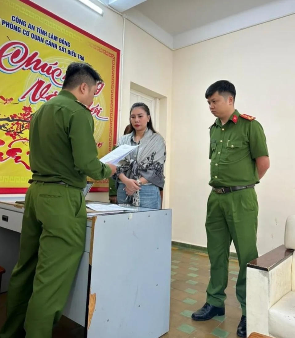 Công an tỉnh Lâm Đồng đọc lệnh bắt tạm giam Phạm Thị Minh Phi Ảnh: N.H