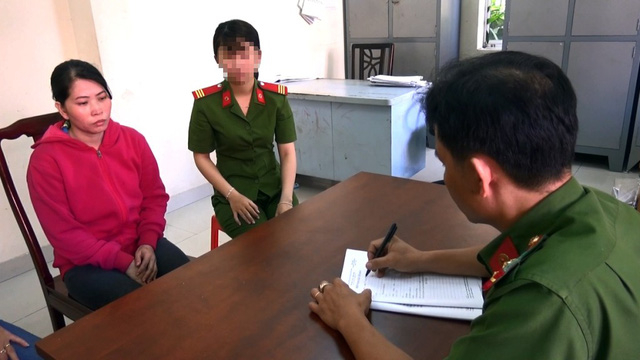 | Hàng Thị Hồng Diễm tại cơ quan công an. |