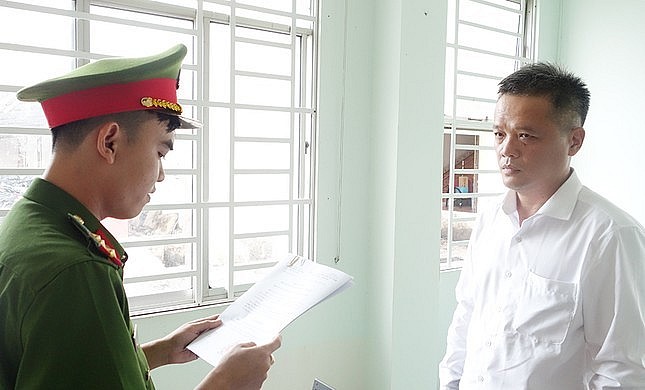 | Công an tỉnh An Giang tống đạt các quyết định khởi tố bị can và lệnh cấm đi khỏi nơi cư trú đối với Nguyễn Tấn Triều. |