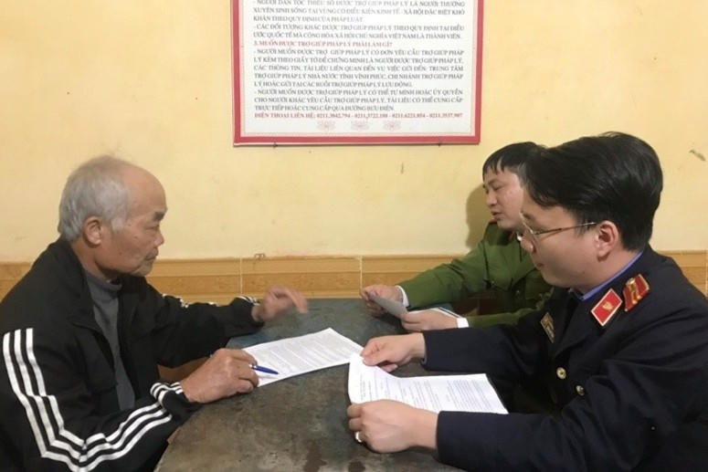 Kiểm sát viên VKSND huyện Vĩnh Tường lấy lời khai với ông Cao Văn Lý (Ảnh: VKSND huyện Vĩnh Tường)
