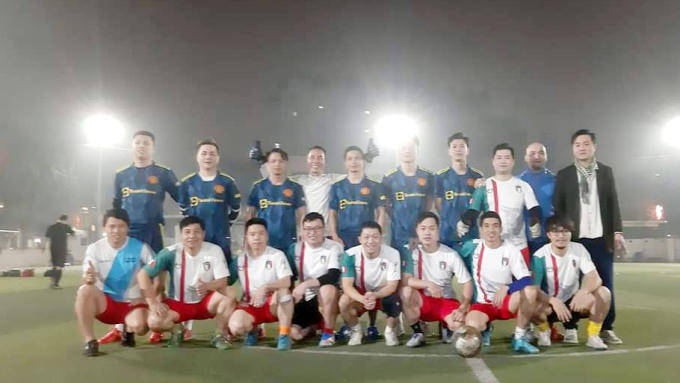 Đội bóng FC Ảnh báo chí (áo màu trắng) chụp kỷ yếu với Đội FC Yên Xá trước trận giao hữu…