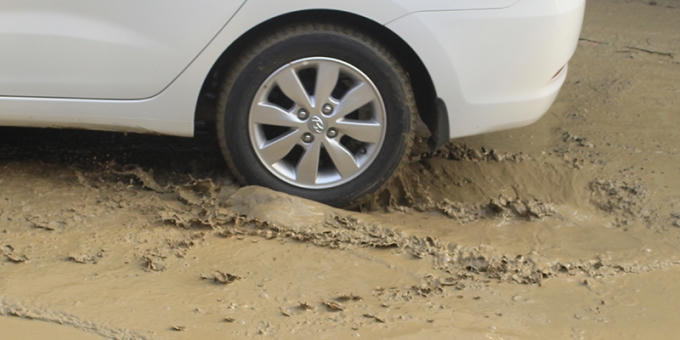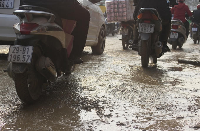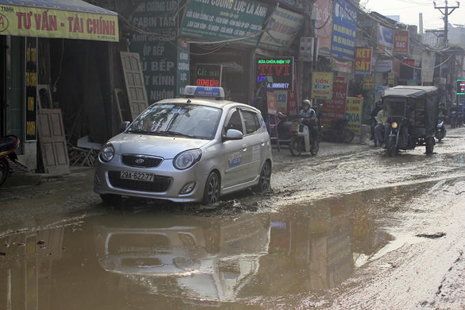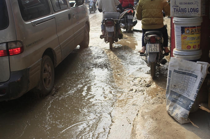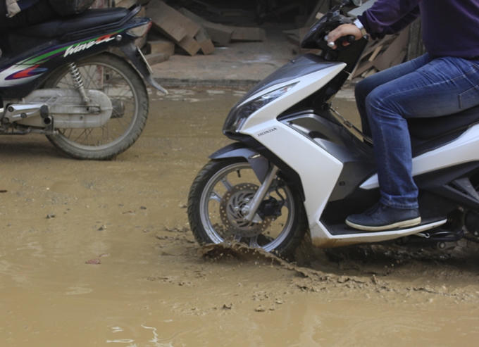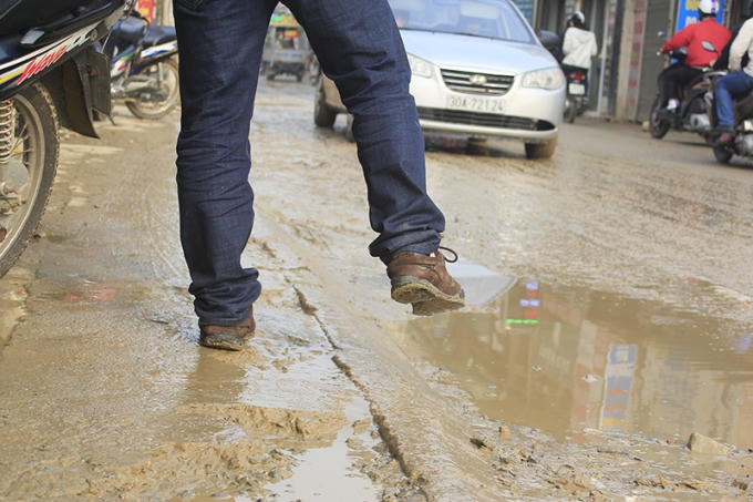 Khốn khổ đi trên đoạn đường lầy lội giữa thủ đô