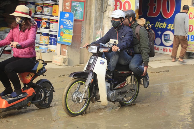 Theo những người dân ở đây cho biết, con đường này hiện đang được thi công đường cống thoát nước. Tuy nhiên do chưa xong nên trời nắng thì bụi mù còn mưa lại lầy lội.