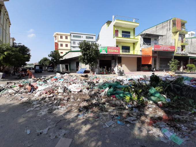 Từ các loại bao ni lông đến thực phẩm, hàng hóa bị hư hỏng do ngâm nước sau trận lụt được các tiểu thương tập trung đổ về đây. Không chỉ có bãi rác tại ngã tư số 4, khu đô thị Long Châu mà dọc tuyến đường Trần Đăng Ninh nhiều bãi rác tương tự cũng mọc lên sau chợ Vinh, lâu ngày những rác thải bốc mùi hôi thối nồng nặc.