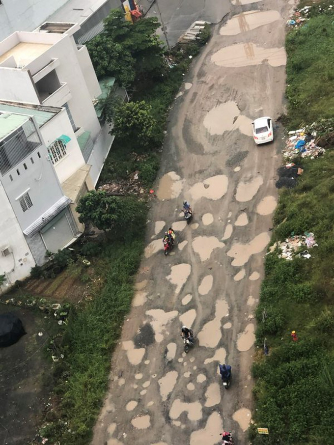 Nhìn từ trên cao, lúc trời mưa khúc đường này chằng chịt hố to, hố nhỏ như tấm da beo, chực gây vạ người đi đường. Nhiều người dân ở gần đó thường xuyên phải tìm cách đi tránh sang đường khác hoặc khó khăn lạng lách để vượt qua các ổ voi, dù biết không an toàn.