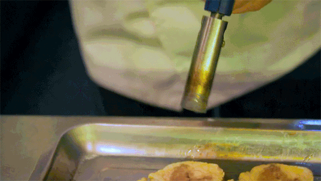 Phần thịt nạm sẽ được đốt bằng đèn khò để bảo đảm độ chín vừa ăn. Cuối cùng là thịt bò Angus, một trong những loại thịt bò đắt nhất thế giới. Thịt bò Angus sẽ được ướp với gừng cay và tiêu sọ để tăng vị.