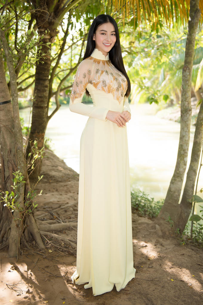 Hoa hậu Phương Khánh thướt tha trong tà áo dài.