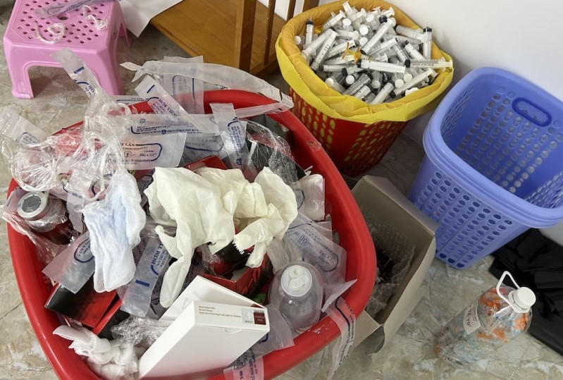 Ngoài ra, qua kiểm tra, cơ quan chức năng còn phát hiện cơ sở này không trang bị thùng rác chuyên dụng để thu gom, lưu giữ rác thải y tế, rác thải nguy hại; Chỉ trang bị thùng rác thông thường không có nắp đậy; Kkhông bố trí khu vực để thùng rác y tế; Rác thải y tế để chung với rác thải thông thường.