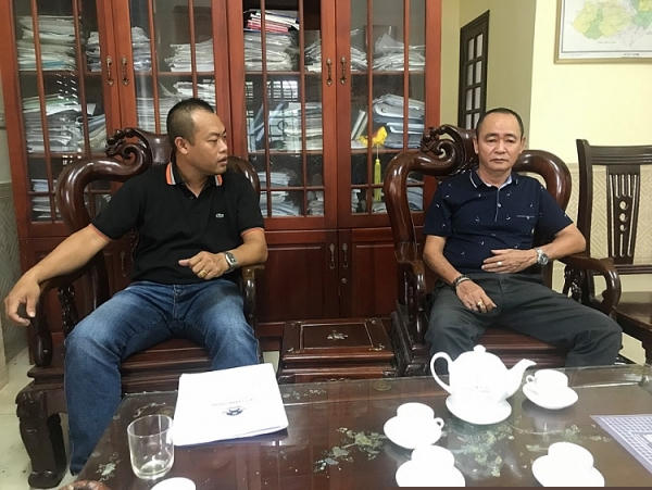 PV Tuổi trẻ và Pháp luật (bên trái) làm việc với Chủ tịch UBND xã Phú Cát