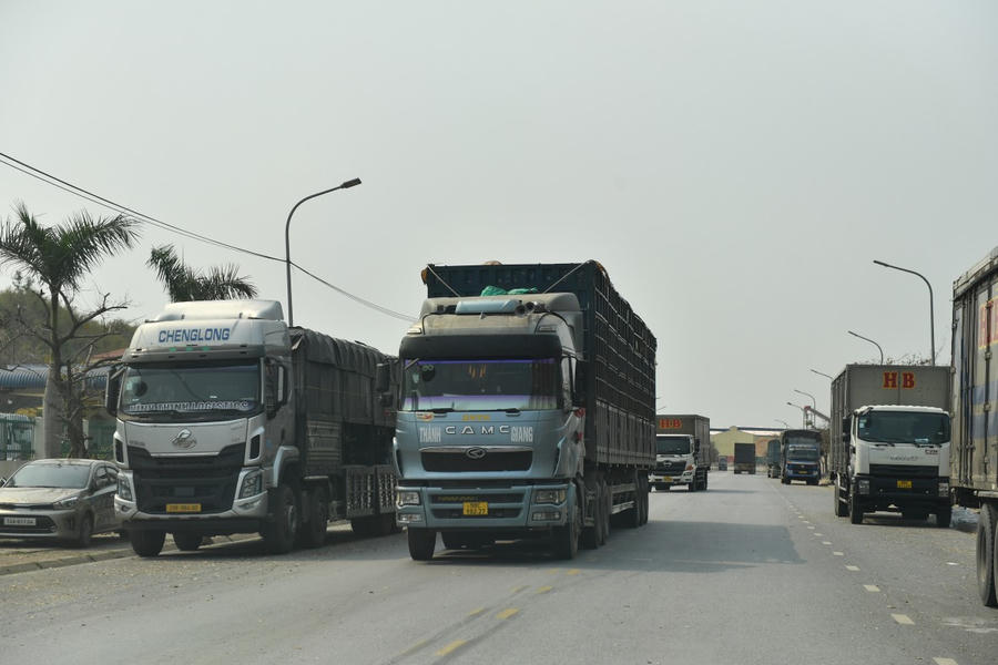 PV ghi nhận hàng chục xe tải cơi nới thành thùng chở dăm gỗ, đậu nành, ngô… chạy ngày đêm qua KCN Cái Lân. Đáng chú ý, nhiều xe đã hết hạn đăng kiểm, thậm chí không dán tem đăng kiểm.