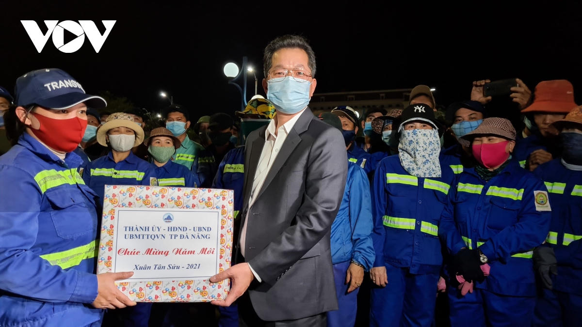 Tại thành phố Đà Nẵng, Giao thừa năm nay, các đường phố, công viên đều vắng người. Chợ hoa thành phố ở Quảng trường 2/9 dọn sớm hơn mọi năm, lượng hoa đã được bán hết từ chiều 30 Tết, tạo điều kiện để công nhân Công ty Môi trường đô thị dọn dẹp thành phố sớm hơn mọi năm. Thăm, tặng quà công nhân làm việc tại chợ hoa thành phố, ông Nguyễn Văn Quảng, Bí thư Thành ủy Đà Nẵng động viên các công nhân tích cực làm việc vì một thành phố sạch đẹp.