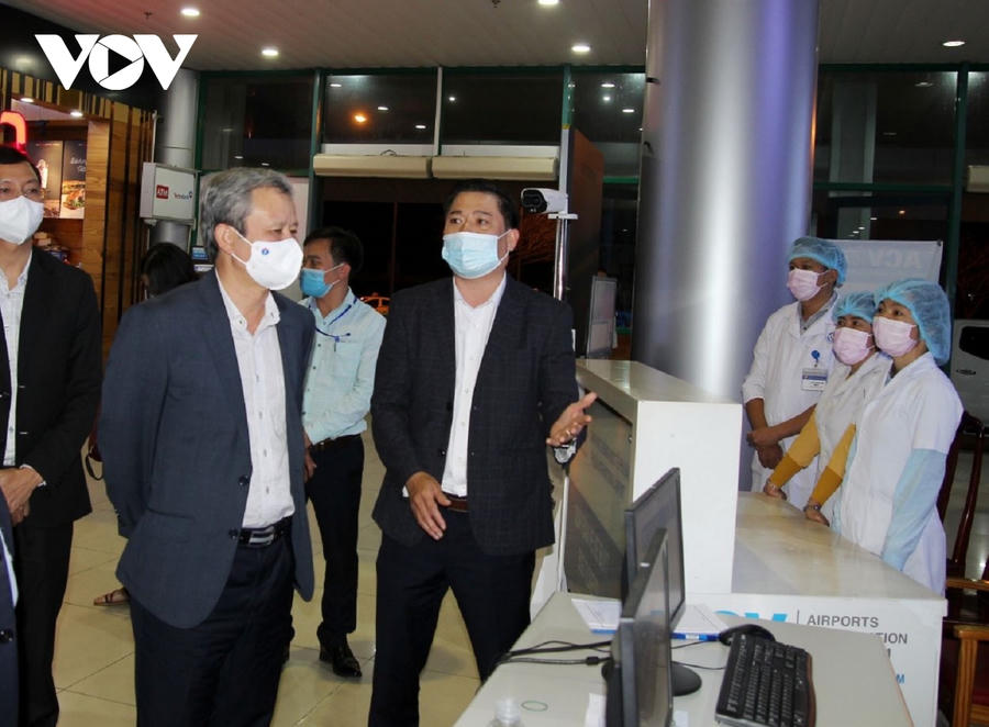 Ông Lê Trường Lưu, Bí thư tỉnh ủy Thừa Thiên Huế thăm chúc Tết tại chốt kiểm dịch Sân bay Phú Bài.