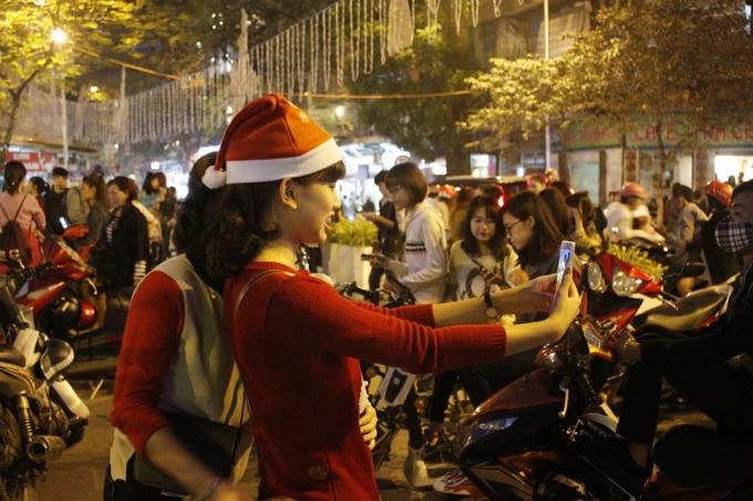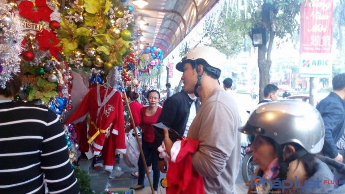 16h15: Trên đường Trần Duy Hưng (Hà Nội) nhiều người vẫn đổ xô đi mua đồ Giáng sinh để chuẩn bị cho buổi lễ quan trọng trong năm.