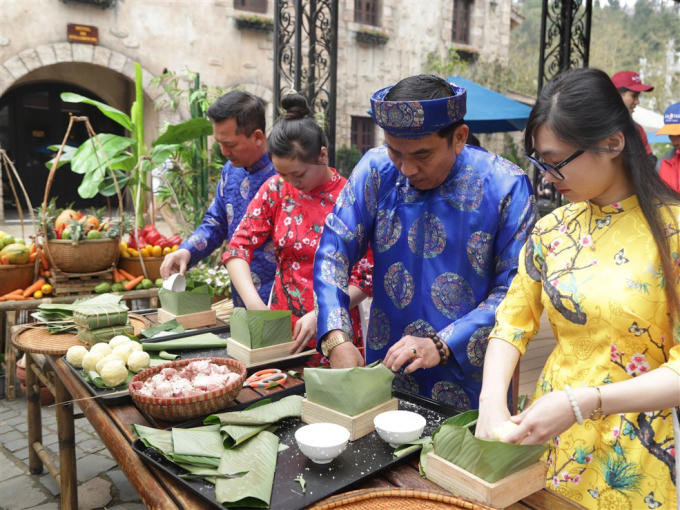 Không khí Tết đã tràn về Sun World Ba Na Hills từ ngày 26-27 Tết với hoạt động gói bánh chưng truyền thống ấm cúng và rộn ràng trên đỉnh Bà Nà muôn hoa rực rỡ.