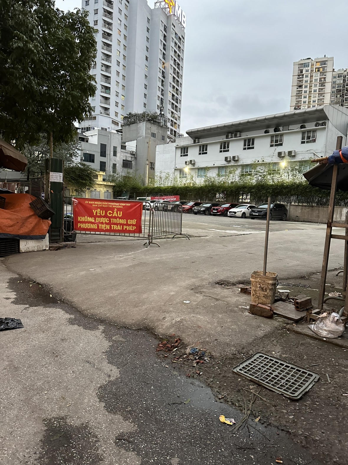Ông Đinh Đức Hiếu – Phó Chủ tịch UBND phường Vĩnh Tuy, quận Hai Bà Trưng cho biết: “Ngay sau khi nhận được phản ánh, UBND phường đã chỉ đạo công an phường phối hợp với cán bộ cơ sở địa bàn dân cư, tổ dân phố thứ nhất là tiến hành quây lưới B40, căng barie, đặt biển cảnh báo về việc không được tổ chức cho các hộ cá nhân kinh doanh, buôn bán hàng hóa, thực phẩm trong khuôn viên khu đất. Thứ hai, không được trông giữ phương tiện trái phép”