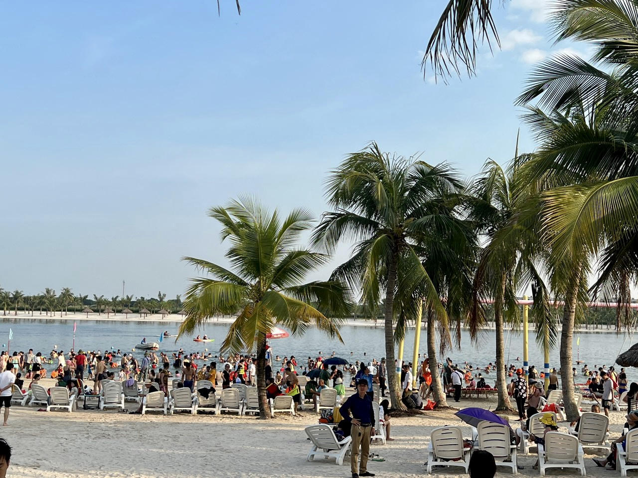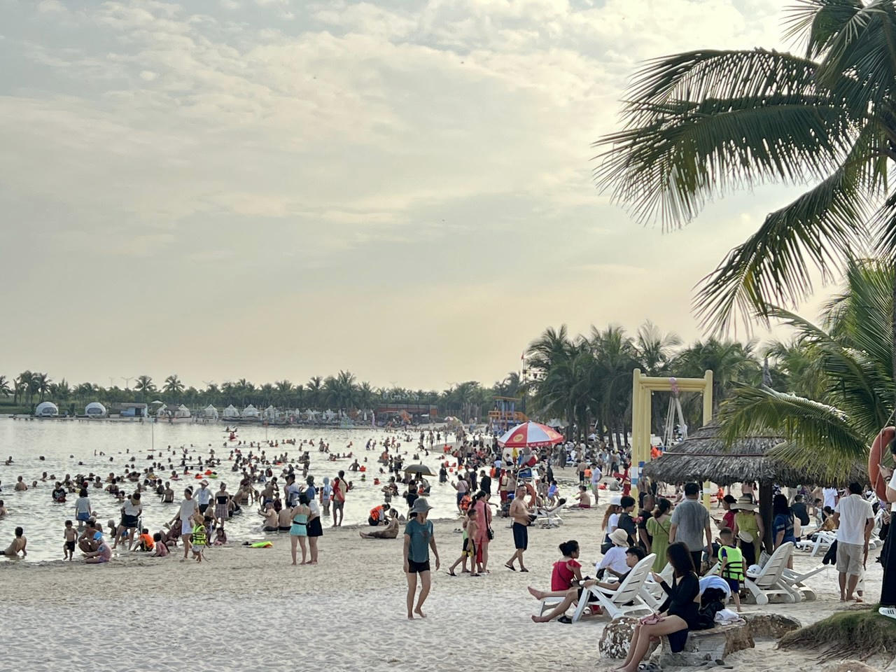 Bãi tắm nhân tạo nằm trong quần thể Khu du lịch quốc tế Đồi Rồng thu hút đông đảo người dân và du khách đến tắm biển, check-in.