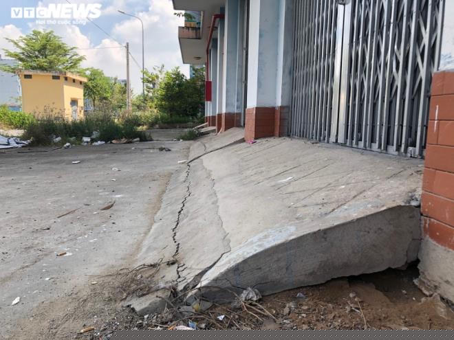 Hầu hết các hộ dân chưa đến ở nhưng công trình nhà ở nơi đây đã xuống cấp nghiêm trọng. Chân tường ở một số tòa nhà xuất hiện các vết nứt lớn kéo dài.