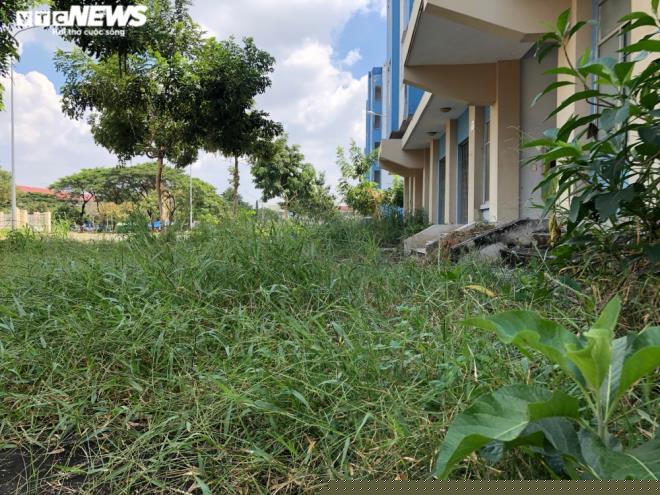 Cỏ mục um tùm, bịt kín lối đi vào toà nhà khu tái định cư Vĩnh Lộc B.