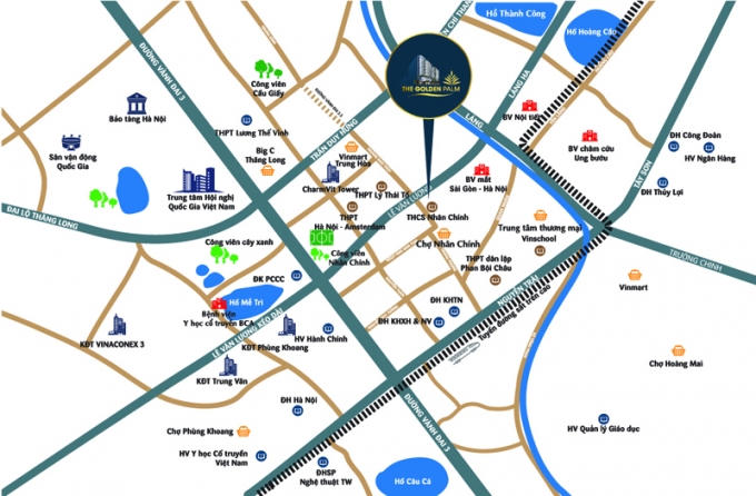 Ngoài ra, The Golden Palm còn nằm gần khu vực Trung Hòa – Nhân chính, địa điểm thu hút nhiều người nước ngoài sinh sống, các doanh nghiệp trong và ngoài nước đặt văn phòng làm việc. Bởi vậy, The Golden Palm cũng hứa hẹn tạo ra hiệu quả đầu tư hấp dẫn.