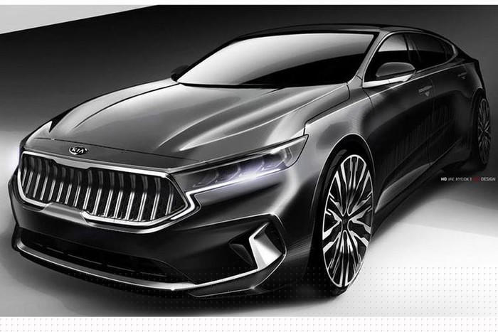 Thông qua những hình ảnh teaser có thể nhận thấy, ở phiên bản 2020 dường như K7 đã mang hơi hướng thiết kế mới, đơn giản và tinh tế hơn. Ở phần đầu xe, mặt ca-lăng được các kỹ sư của Kia tái thiết kế với dấu ấn hình mũi hổ đặc trưng sắc nét hơn. Cụm đèn chiếu sáng full-led chính không còn rườm rà, sắc nhọn như phiên bản trước nữa mà thay vào đó là những nét thẳng cắt nhau một cách gọn gàng.