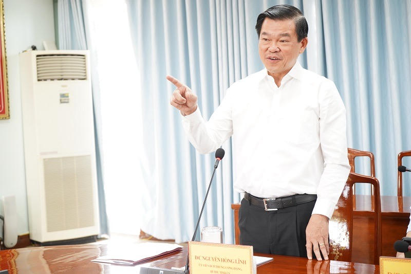 Bí thư Tỉnh uỷ Nguyễn Hồng Lĩnh phát biểu tại buổi làm việc.