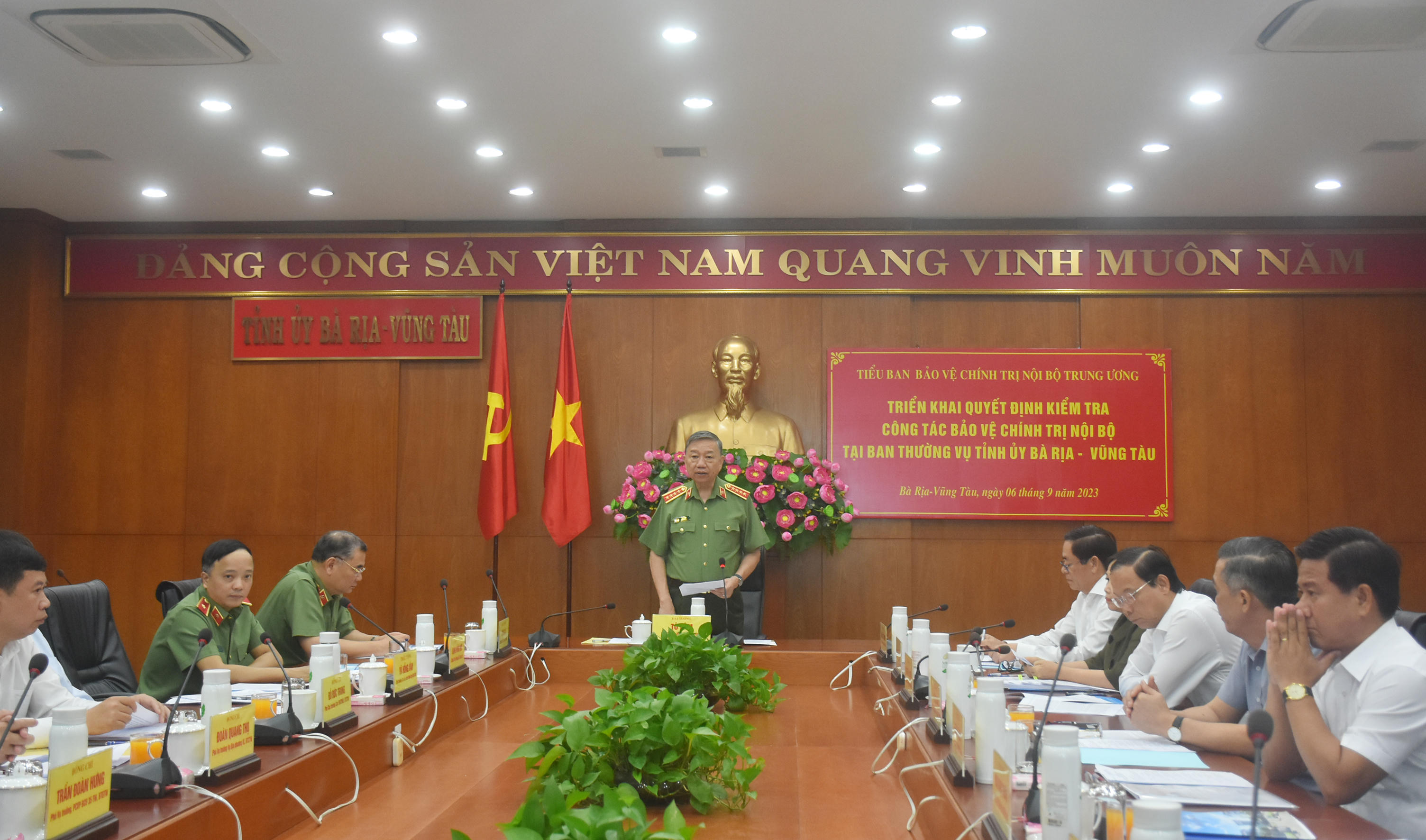 Ngày 6/9, Tiểu ban Bảo vệ chính trị nội bộ Trung ương do Đại tướng Tô Lâm, Ủy viên Bộ Chính trị, Bộ Trưởng Bộ Công an, Phó trưởng Tiểu ban làm trưởng đoàn đã có buổi làm việc về triển khai Quyết định kiểm tra công tác bảo vệ chính trị nội bộ với Ban Thường vụ Tỉnh ủy Bà Rịa - Vũng Tàu.