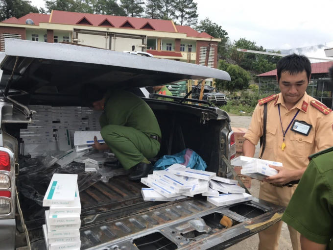 Nhận tin báo, Tổ công tác Trạm CSGT huyện Ngọc Hồi, thuộc Phòng CSGT Công an tỉnh Kon Tum có mặt tại hiện trường. Thời điểm kiểm tra xe mang BKS 81C- 085.53, lực lượng chức năng phát hiện trên thùng xe chở 18.500 gói thuốc lá nhãn hiệu ESSE không rõ nguồn gốc và 1 cặp biển số.