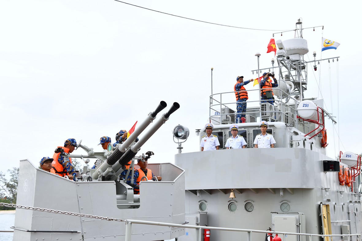 Đại tá Trịnh Xuân Tùng - Tư lệnh Vùng 5 Hải quân lầm trưởng đoàn kiểm tra tháng đầu huấn luyện tại các đơn vị trực thuộc Vùng đóng quân trên địa bàn TP. Phú Quốc, tỉnh Kiên Giang trong hai ngày 1 và 2/4.
