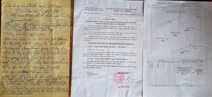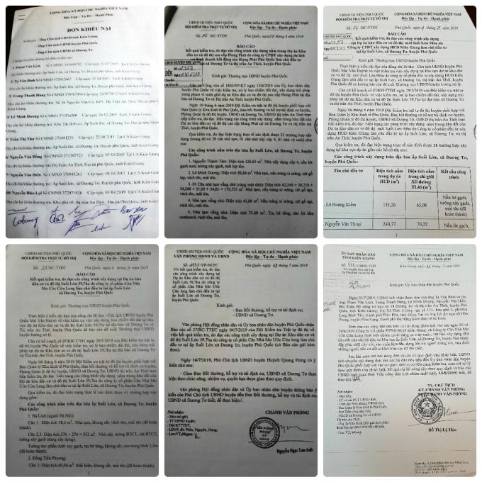 Đơn của tập thể người dân, các văn bản báo cáo và chỉ đạo của UBND tỉnh Kiên Giang.