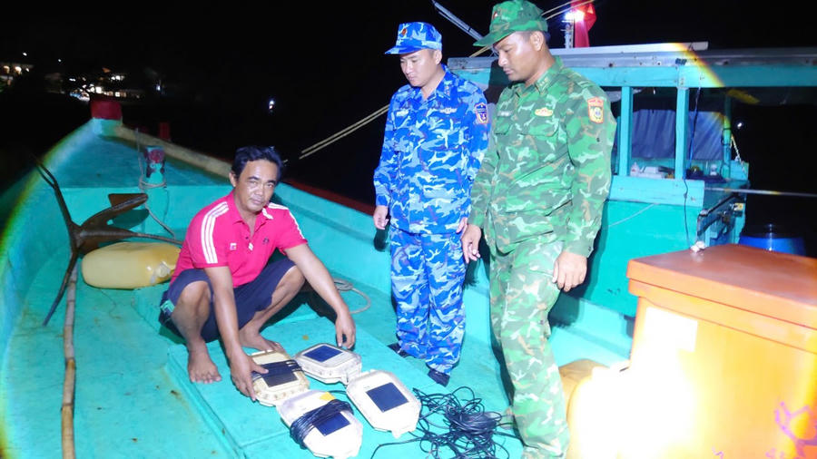 Vừa qua, trong quá trình tuần tra trên biển Đồn Biên phòng Thổ Châu phối hợp với Trạm Cảnh sát biển số 4 đã phát hiện một tàu cá không rõ số hiệu có dấu hiệu chở thuê 04 thiết bị giám sát hành trình tàu cá khác để đổi lấy dầu chạy máy ghe câu lôi.