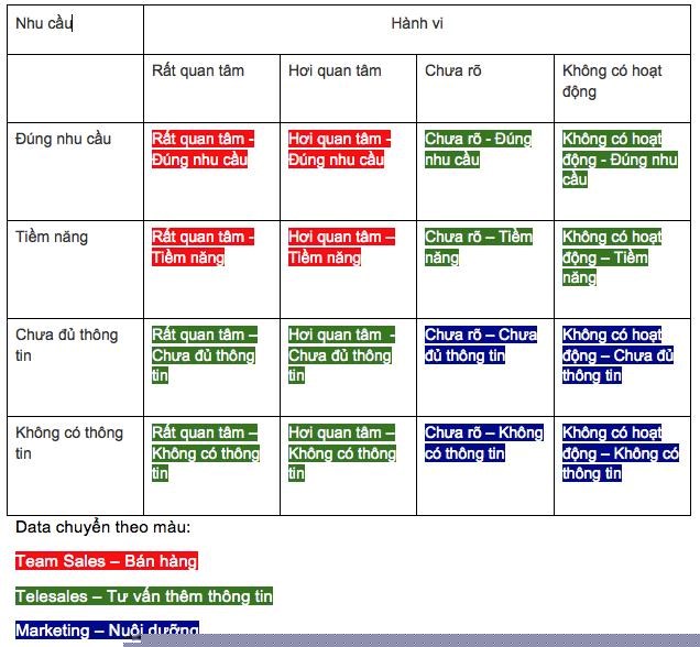 Bộ phận Telesales/chăm sóc khách hàng sẽ nhắm đến các khách hàng mà trong đó họ đã thể hiện được một trong hai yếu tố nhưng vẫn chưa đầy đủ thông tin để có thể tư vấn và bán hàng một cách hiệu quả. Nhiệm vụ của bộ phận này là thu thập cho đủ thông tin trước khi chuyển qua bộ phận kinh doanh.
