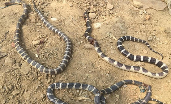 Khi dọn vườn, gia đình ông Lý hoảng hồn phát hiện 4 con rắn cặp nia đen trắng cực độc.