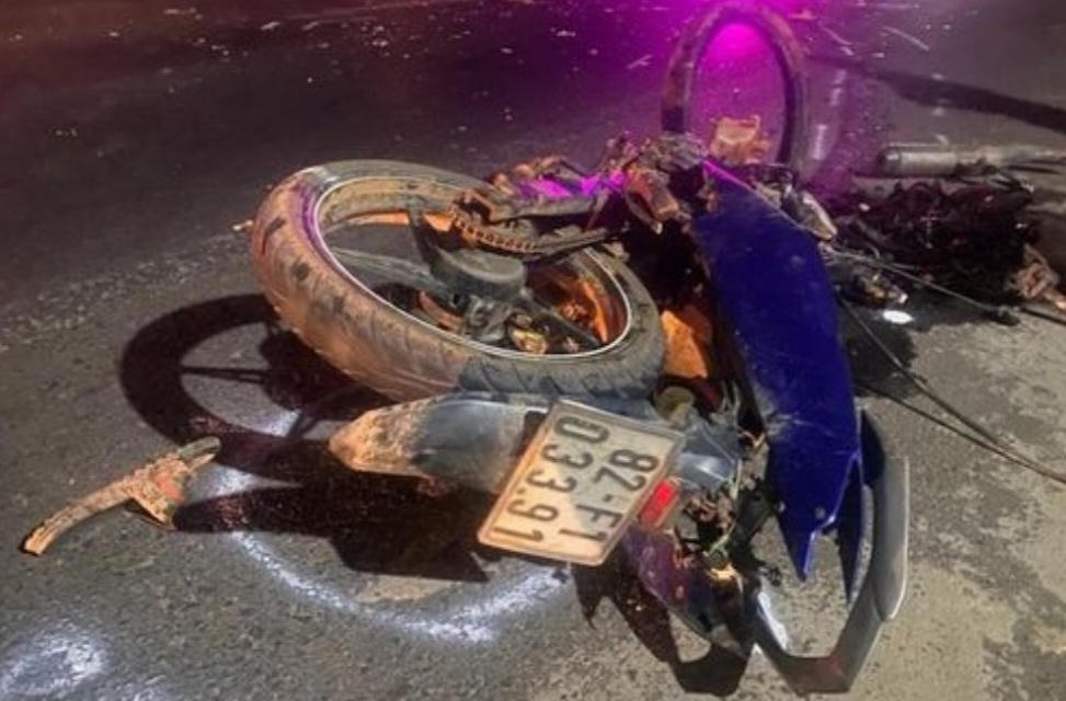Cú va chạm mạnh khiến A.T., A.Tho. tử vong tại chỗ. Tại hiện trường, chiếc xe máy gãy nát, ô tô hư hỏng nặng.