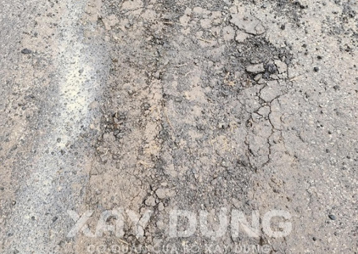 Nền đường bị sụt lún, bong tróc lớp nhựa.