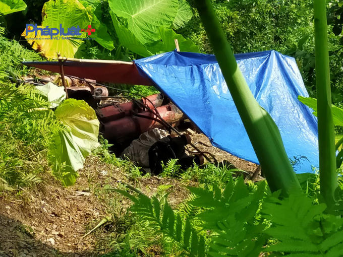 Tại hiện trường, vàng “tặc” kéo ống dẫn nước dài hàng trăm mét để dẫn vào lò tuyển vàng và sử dụng sinh hoạt, trước cửa hang máy móc để la liệt. Chất thải từ khai thác vàng thải ra trực tiếp khu vực sông suối, hủy hoại môi trường. Để khai thác lâu dài, phía trên mái lán trại các đối tượng phủ bạt, một chòi để máy móc, một chòi để ngủ và sinh hoạt.