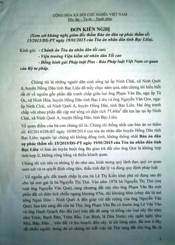 Kỳ 1 - Bạc Liêu: Bức xúc vụ tranh chấp đất, dân tố bản án của tòa thiếu khách quan
