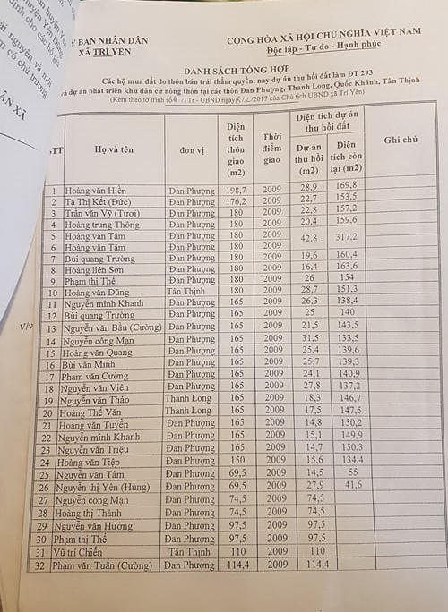 Không chỉ vậy, qua điều tra của PV, chỉ trong năm 2009, lãnh đạo 4 thôn Thanh Long, Đan Phượng, Quốc Khánh, Đức Thịnh đã bán đất trái thẩm quyền cho 55 hộ.