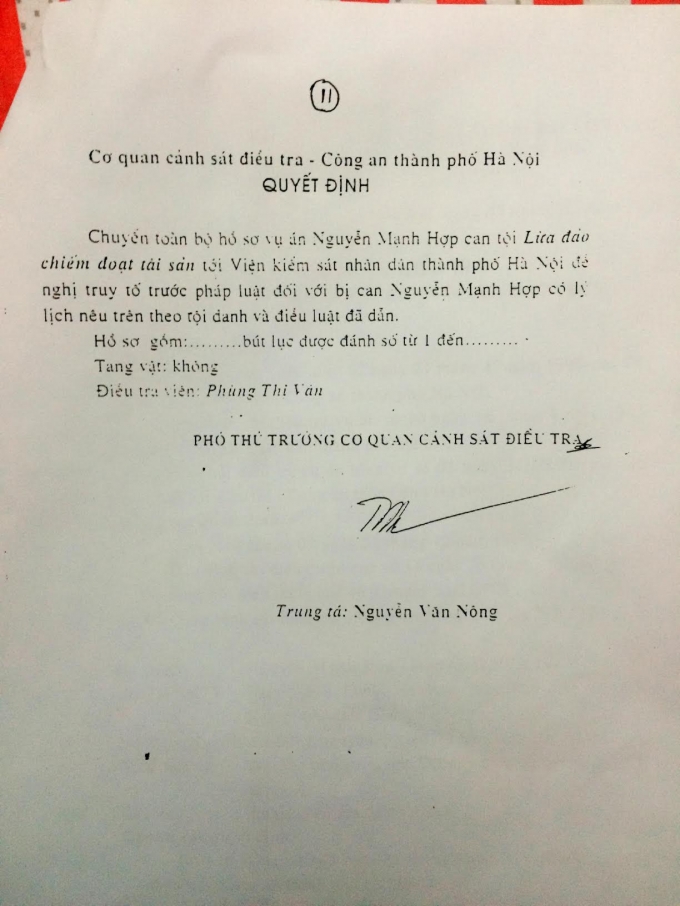 | Kết luận điều tra của Công an TP Hà Nội. |