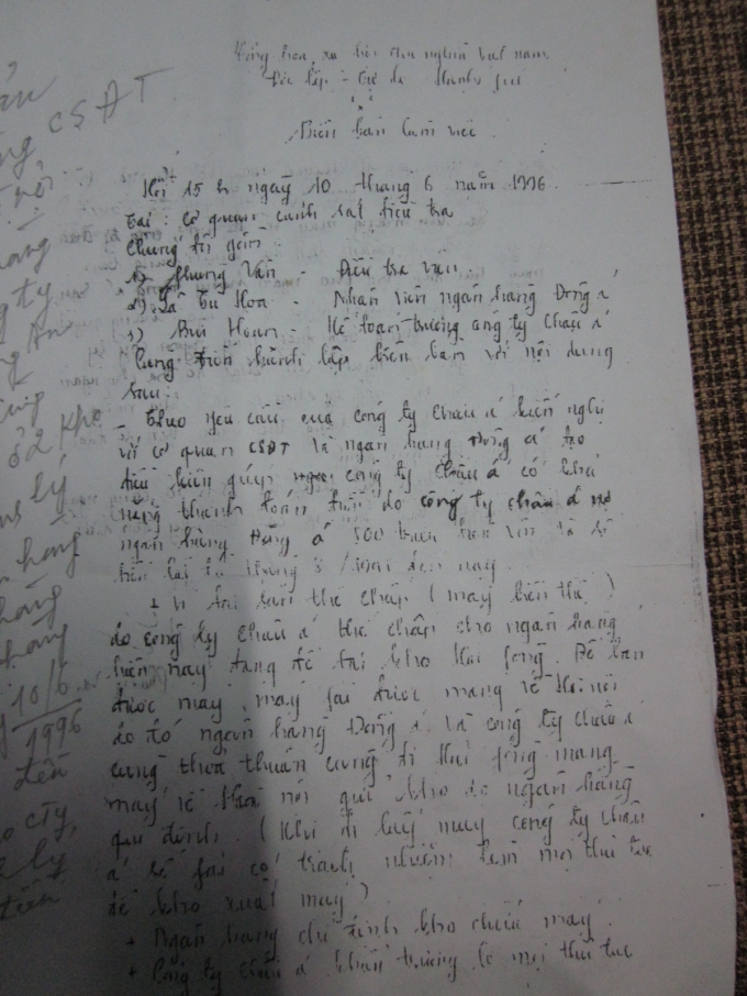 | Biên bản làm việc giữa điều tra viên, đại diện NHĐA, Công ty Châu Á, ngày 10/6/1996. |