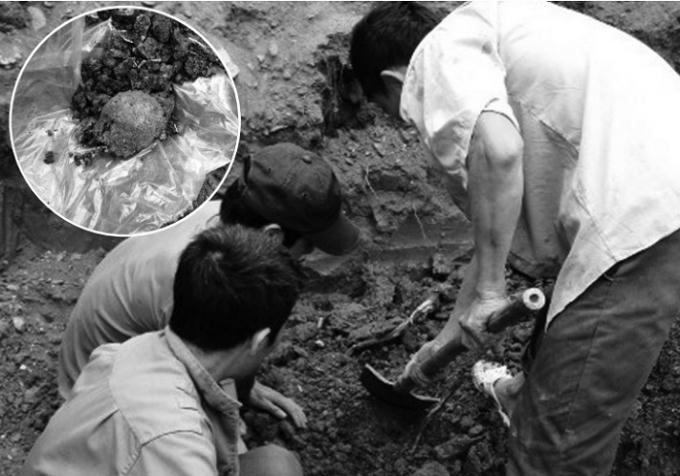 Tuy nhiên, sau khi khoét phần xung quanh, anh Phi thấy đó là một đống xếp lại từ nhiều viên đá tảng khá lớn. Vì đã có thiết kế từ trước nên dù có gặp đá cũng phải đào. Anh Phi cùng đám bạn mình hì hục bê từng tảng đá bỏ ra ngoài, đến khi gần hết thì bất ngờ phát hiện ra có một số mảnh vải loại áo bộ đội như thể cháy dở…