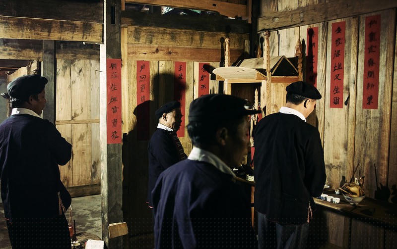 Các thầy cúng có uy tín tại làng đang làm lễ.