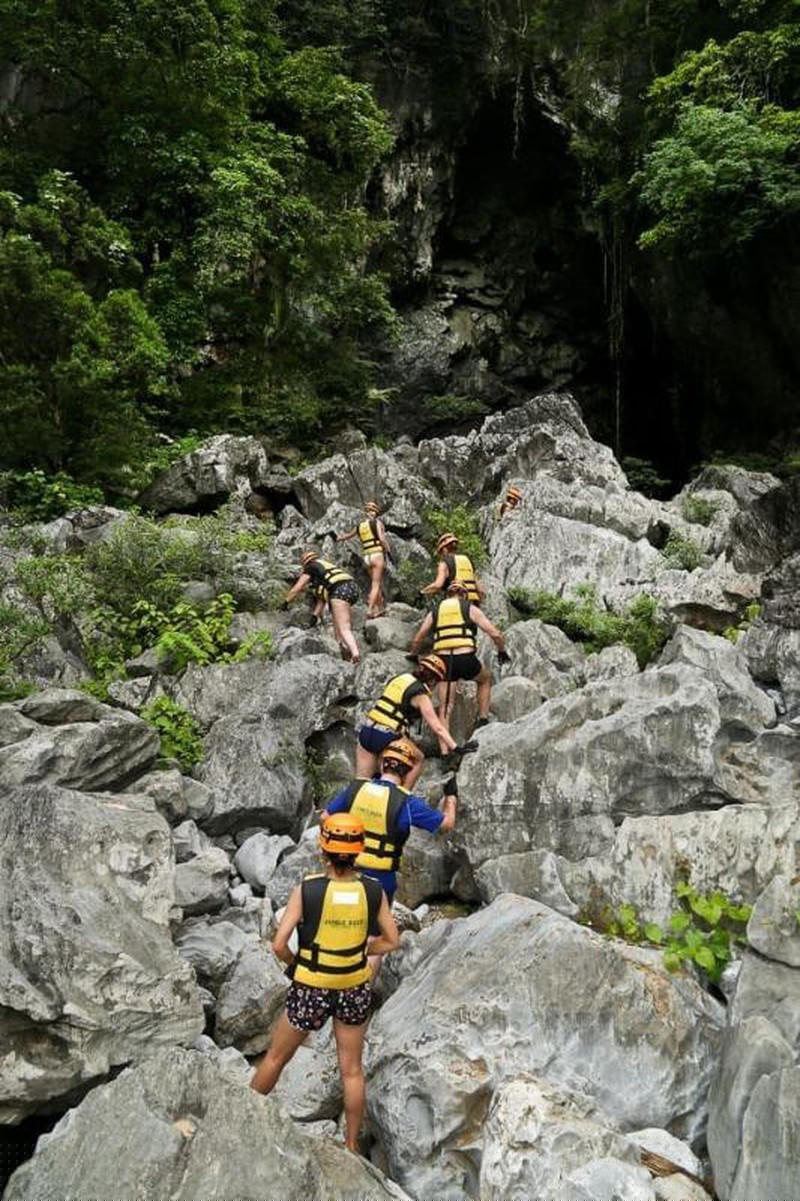 Trekking tiếp tục hành trình vào hang Trạ Ang.