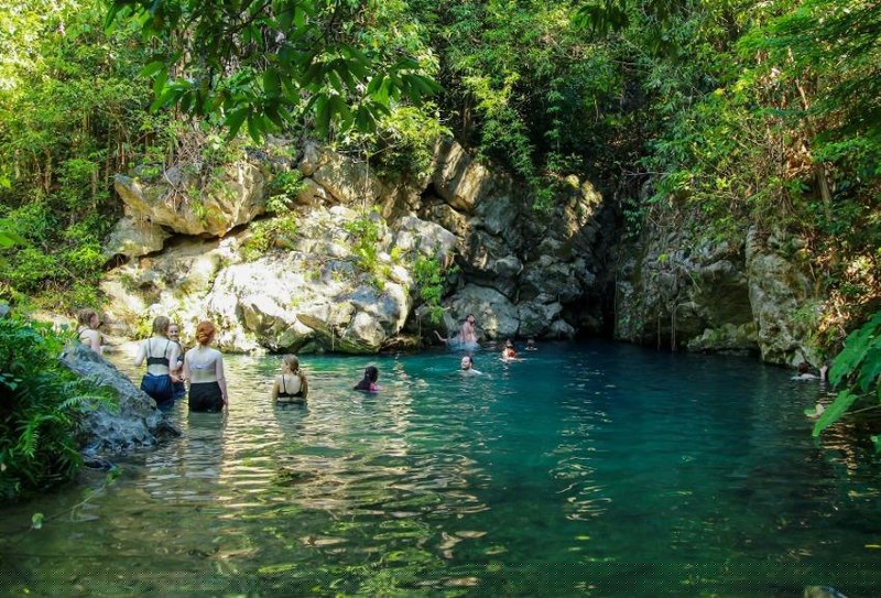 Giữa thung lũng này, hồ Ma Đa được du khách mệnh danh là “hồ bơi tự nhiên” giữa lòng di sản. Đây là hồ nước nằm dưới một hang sông ngầm, dòng nước được hoà quyện từ sâu thẳm trong suối nguồn núi đá chảy ra.